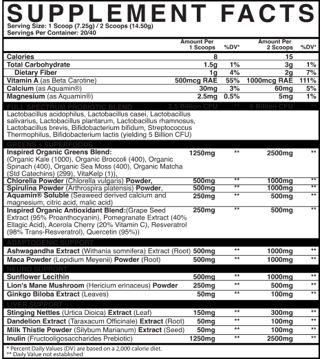 Inspired Greens isn't just any greens powder supplement. It's jam-packed with everything needed to make your body and mind into a powerhouse.
