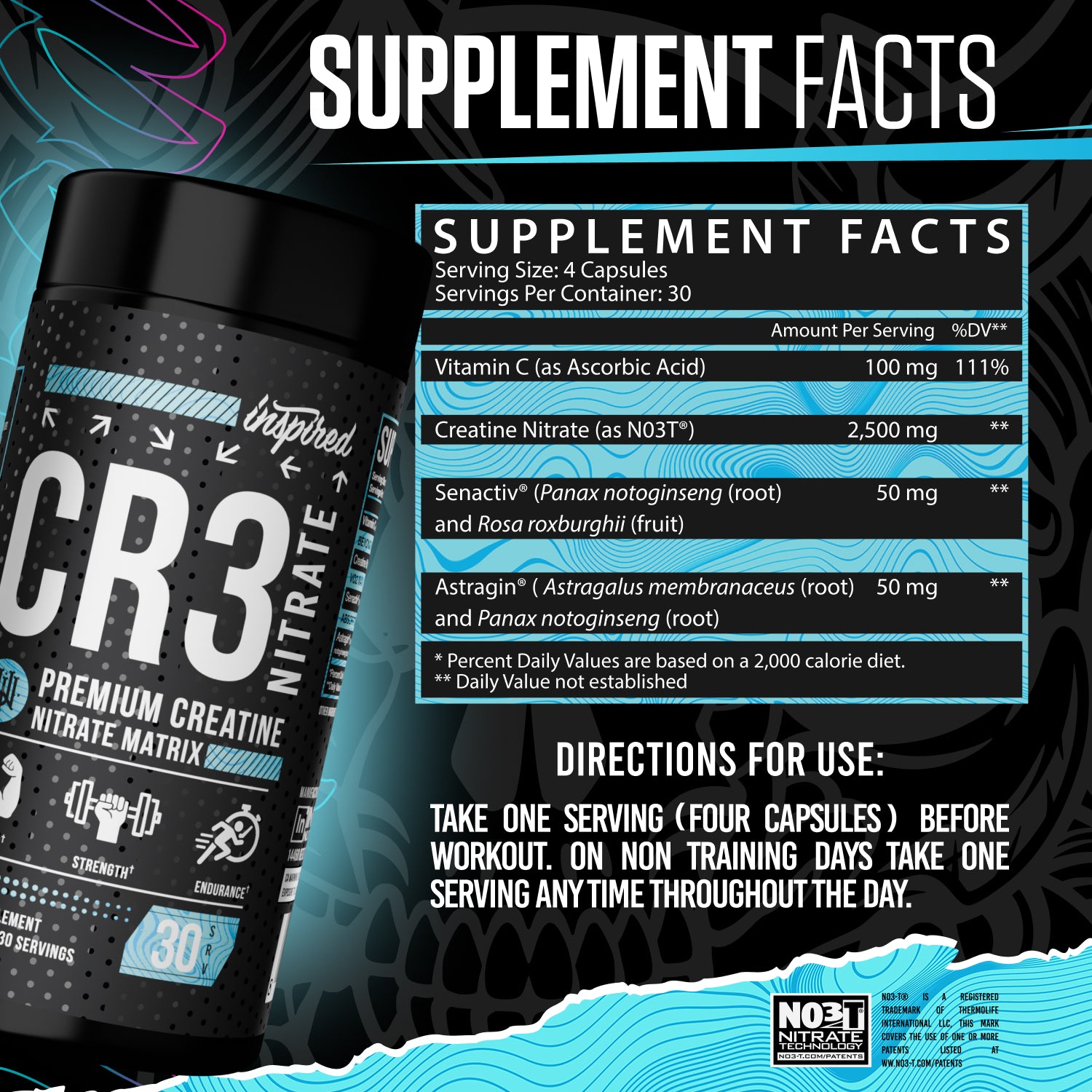 Introducing CR3 – an encapsulated formula built on top of the almighty creatine, and propelled even higher with strategically-selected ingredients to optimize absorption, and even nitrate for a nitric oxide boost.