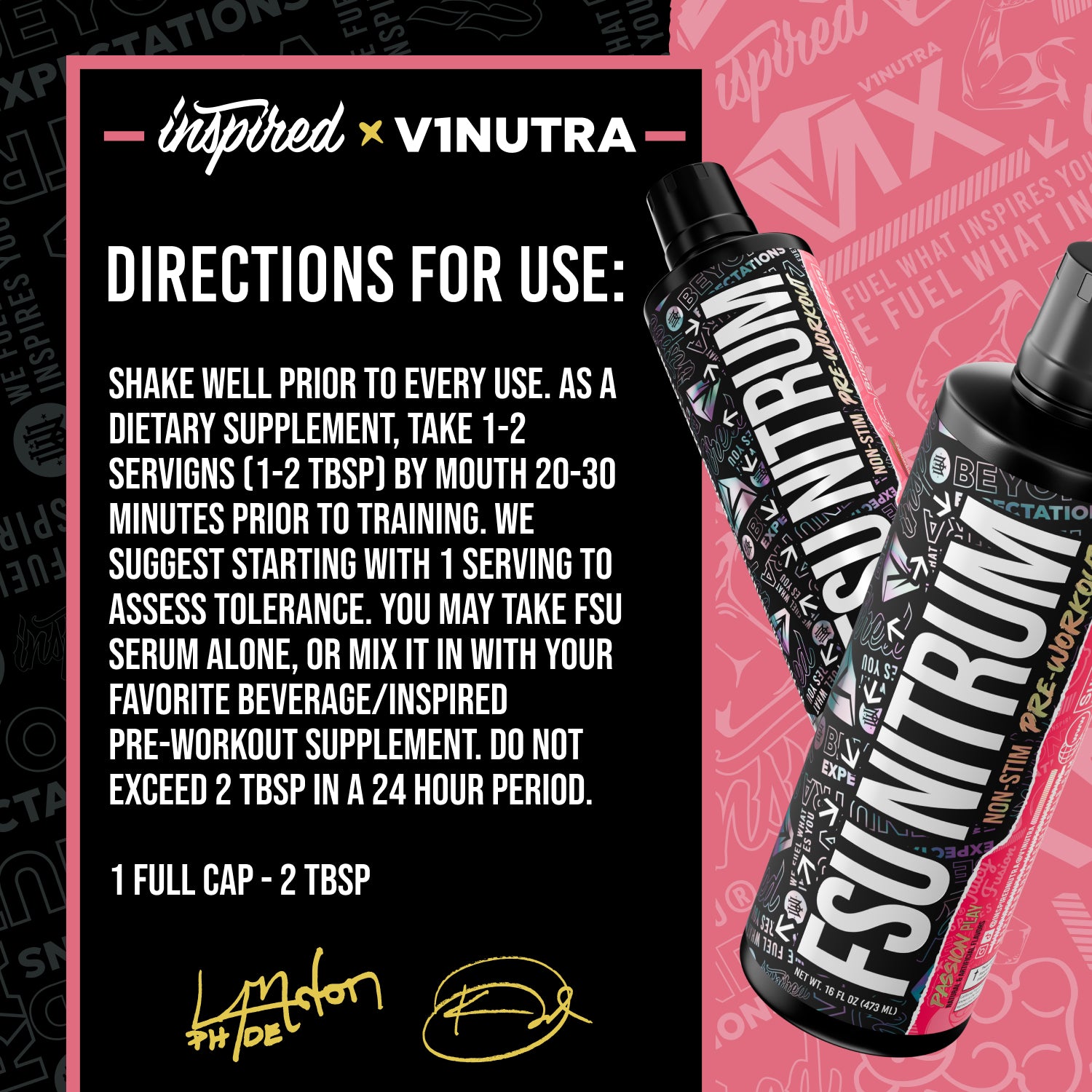 FSU Serum may be taken alone or mixed with your favorite beverage or Inspired pre-workout supplement.