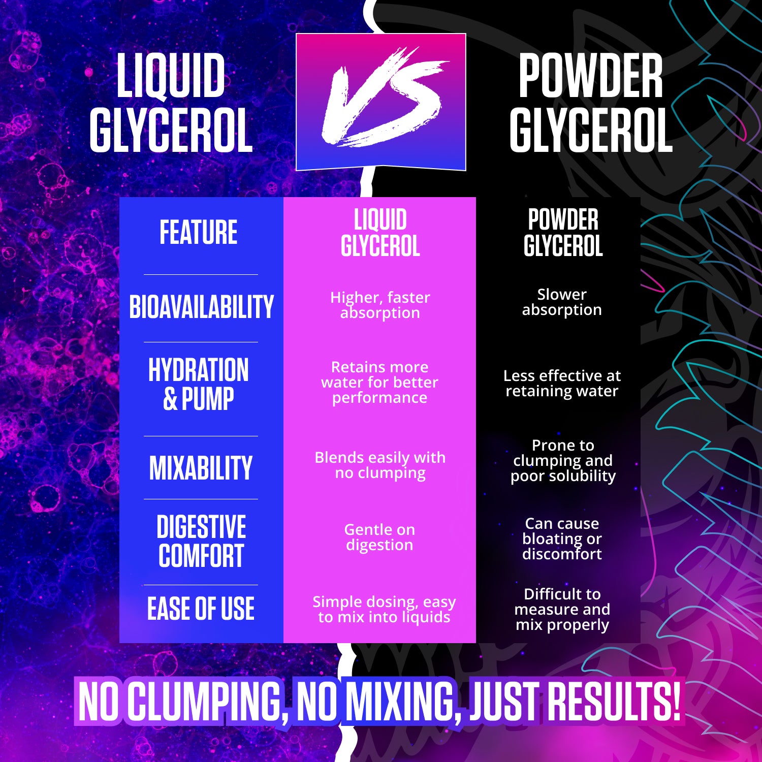 Beyond achieving results, the other side of a successful supplement is consumability. Glycerol is notoriously difficult to work with in powdered form. In order to avoid clumping, nearly all glycerol supplements on the market need to cram in loads of silica.